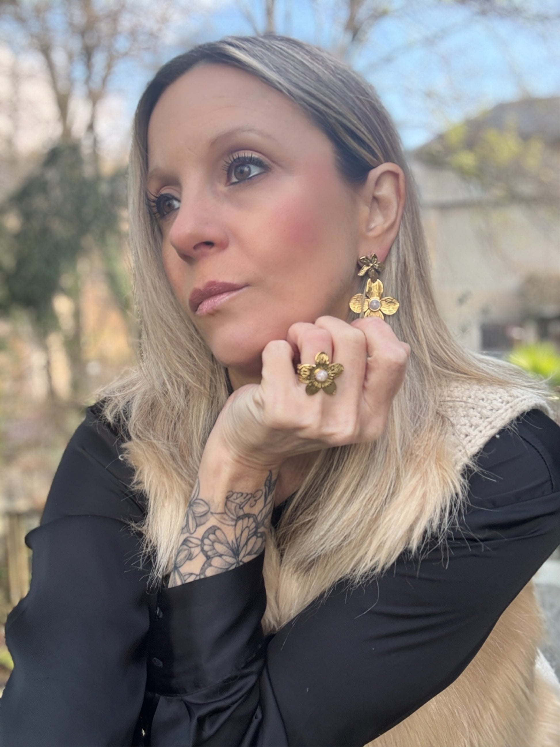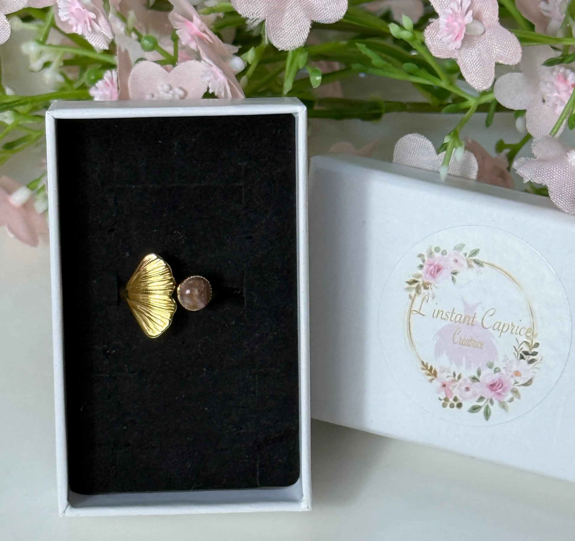 La bague est en acier inoxydable réglable , sa petite perle est façonné en argile polymère et résine.