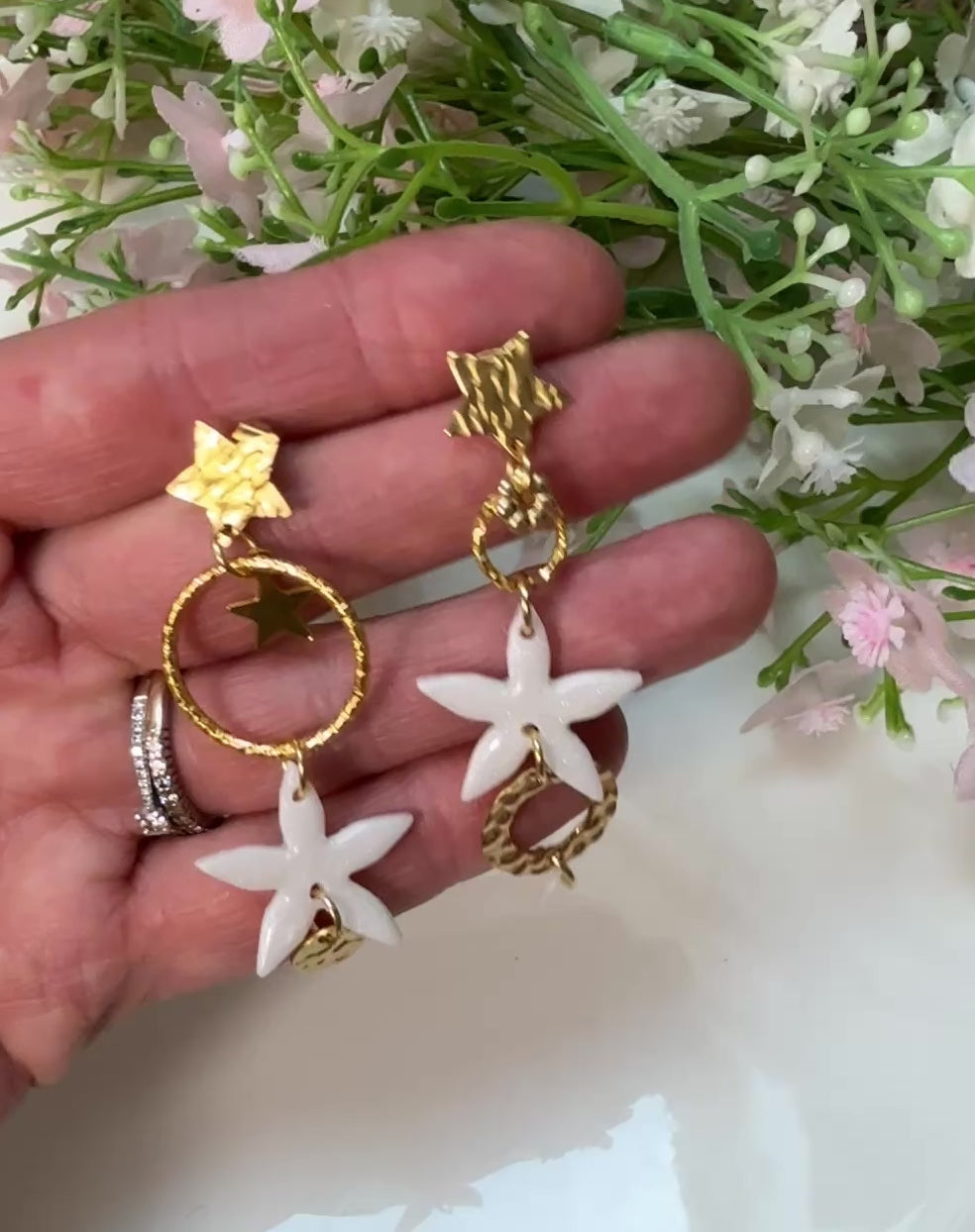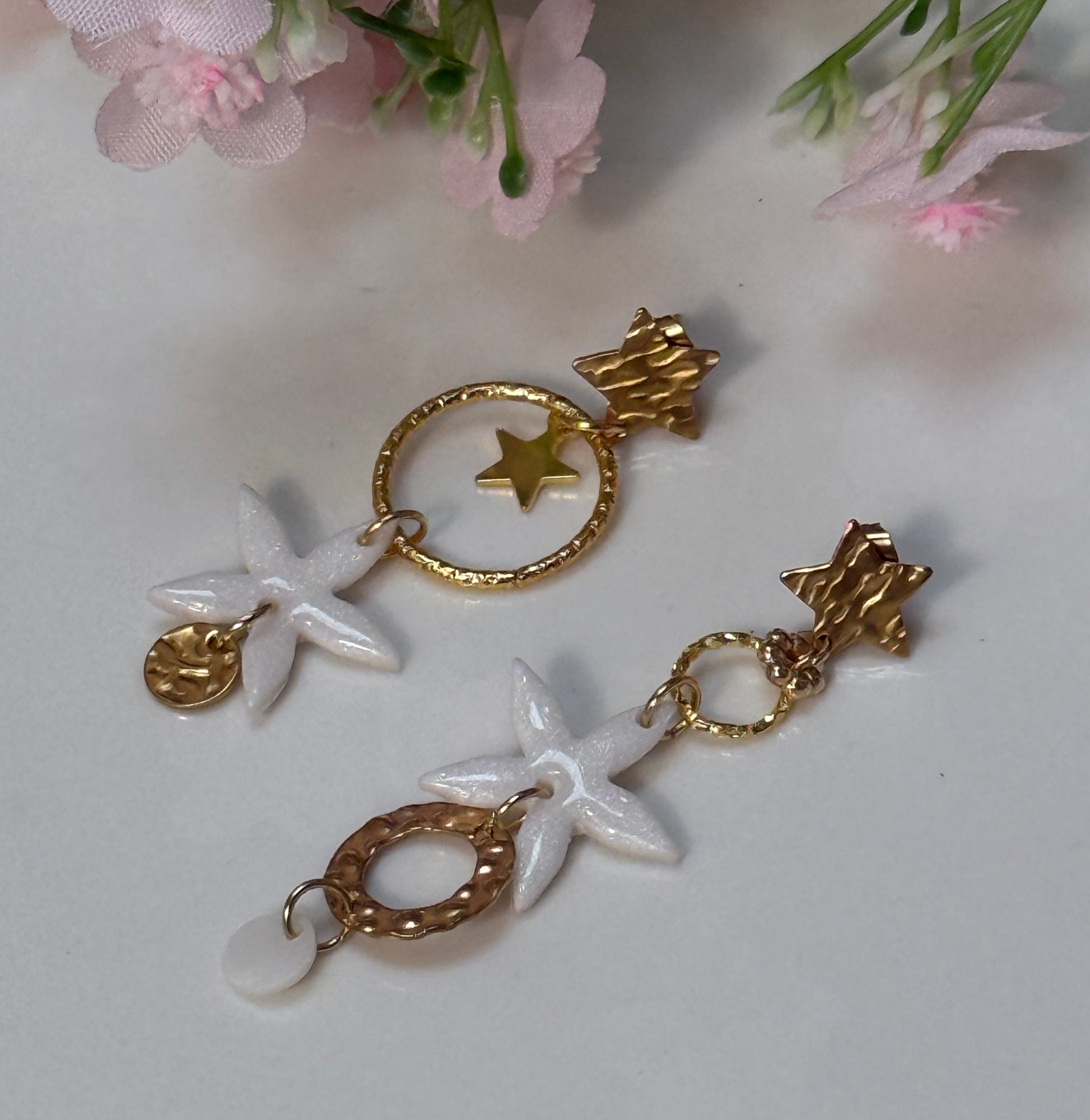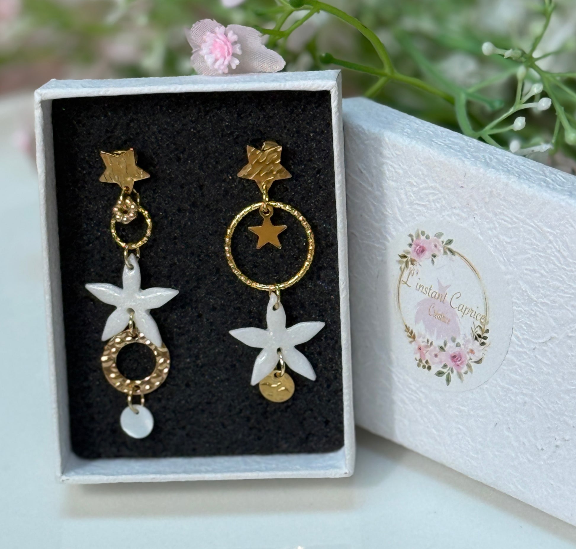 Les boucles Lea sont de délicates boucles d'oreilles asymétriques, montées sur une puce d'oreille en acier inoxydable. Elégante et originales, elles apportent une touche unique à chaque tenue.