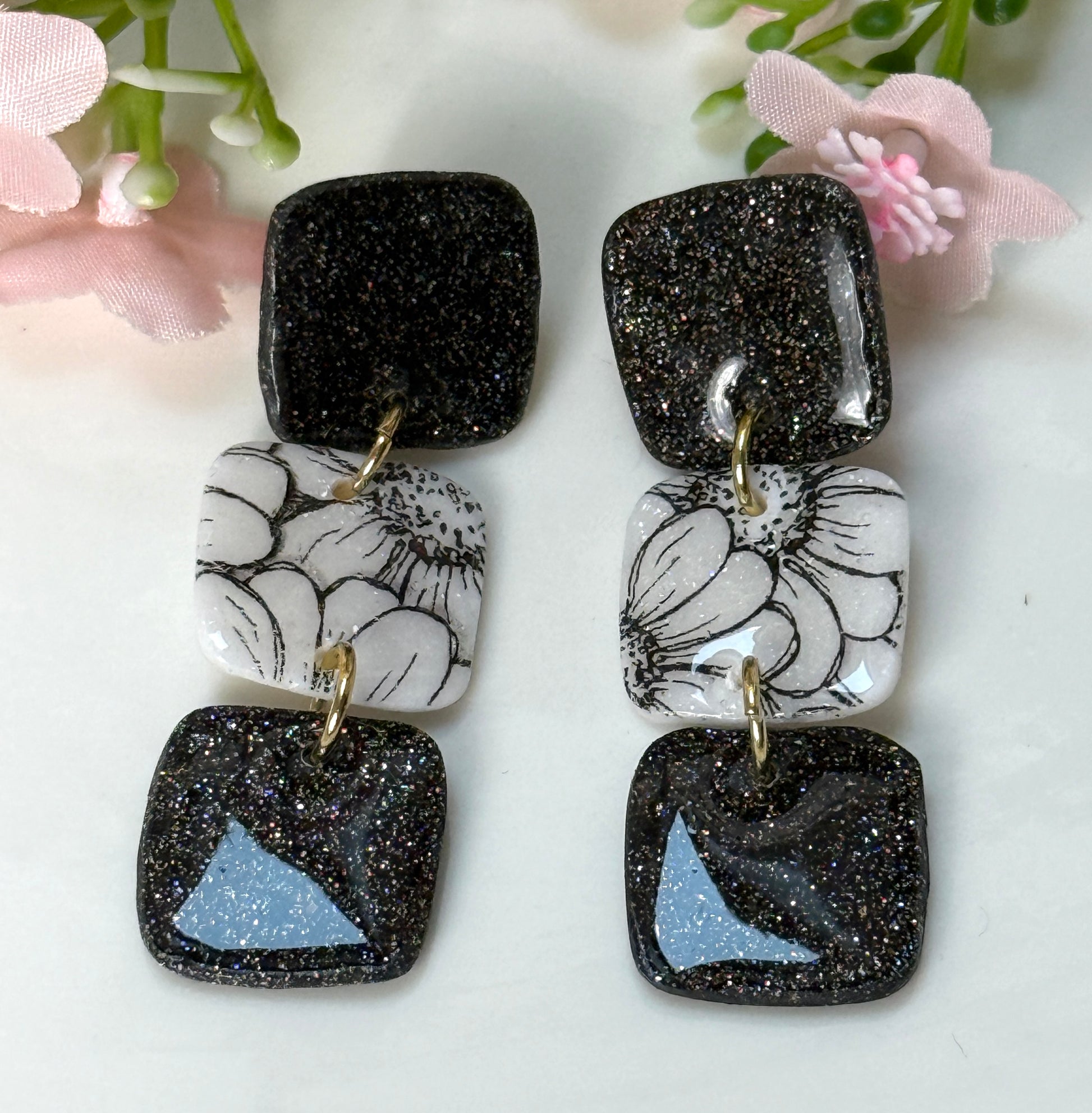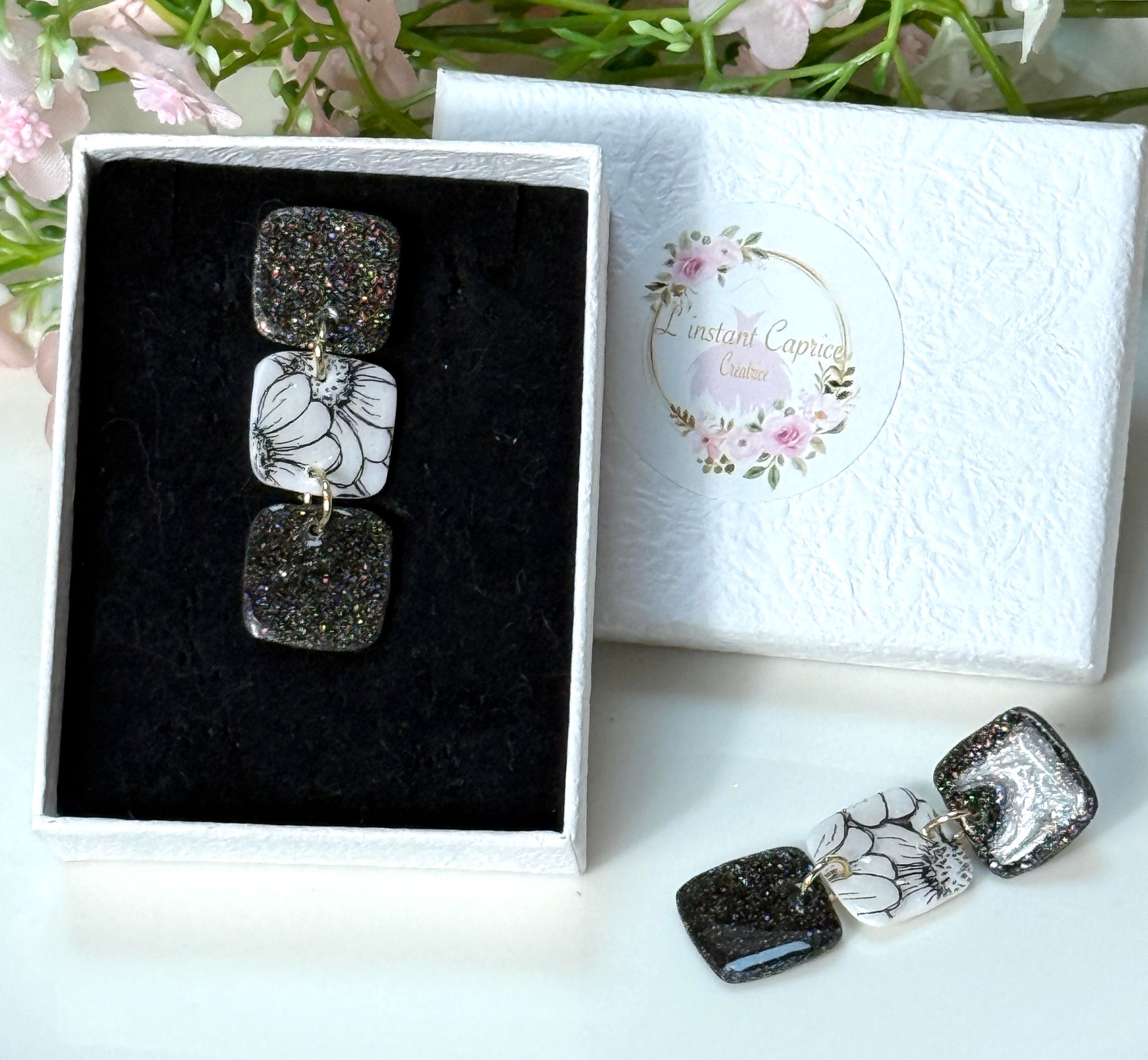 Les petits carré sont entièrement réalisé à la main en argile polymère et monté sur une puce d'oreille en acier inoxydable.