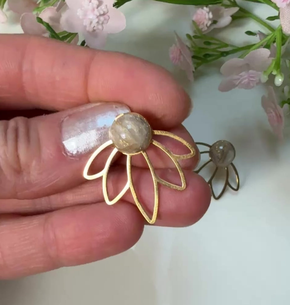 Une magnifique paire de boucles d'oreilles en acier inoxydable avec sa petite perle en argile polymère et résine.