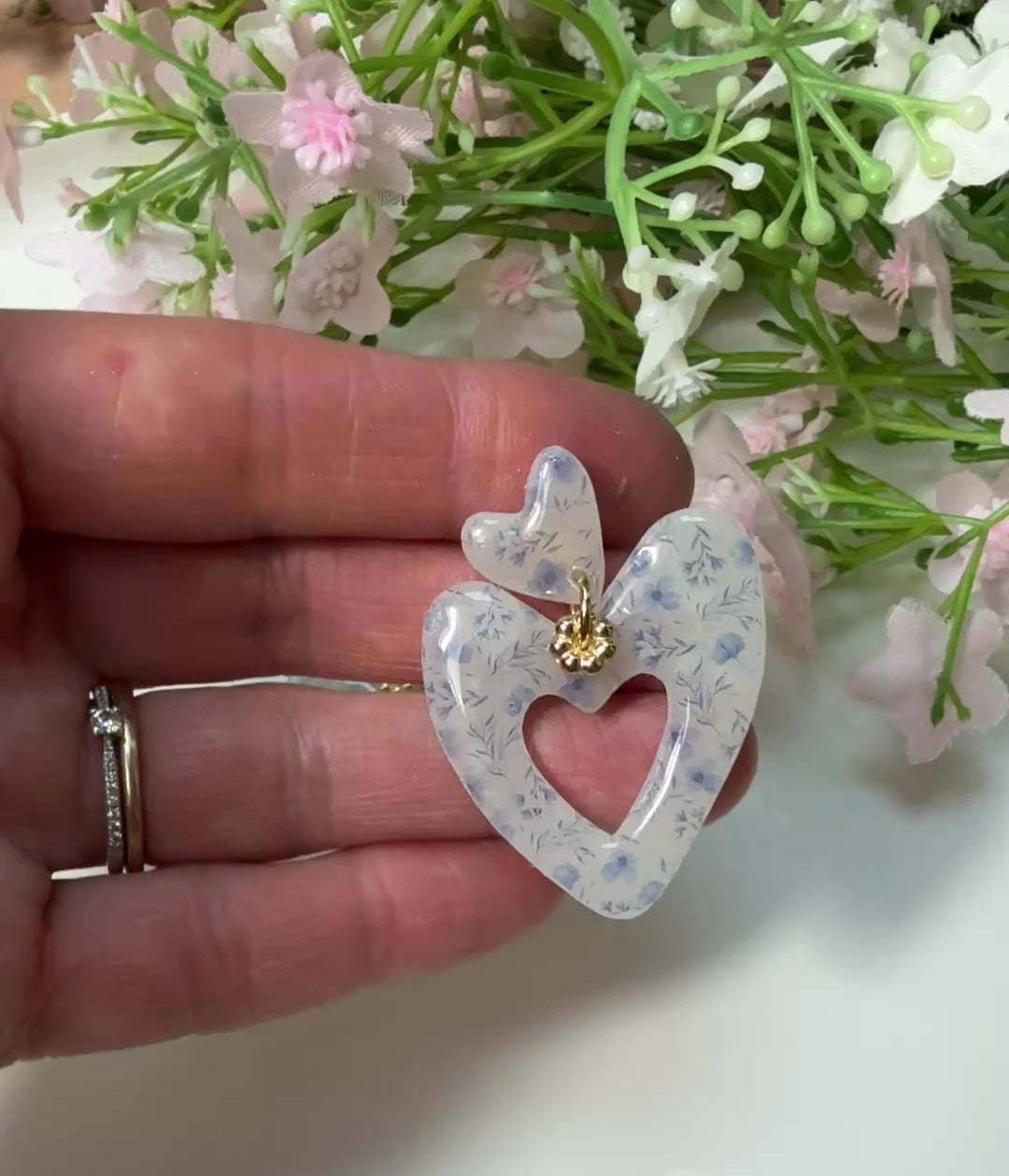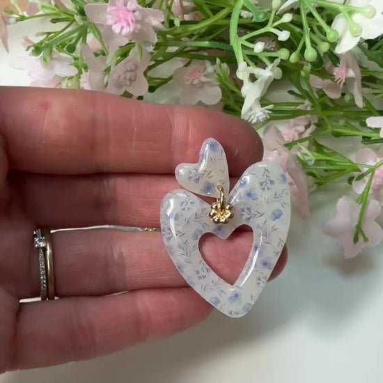 Ce magnifique double coeur est en argile polymère et celui-ci est monté sur une puce d'oreille en acier inoxydable.
