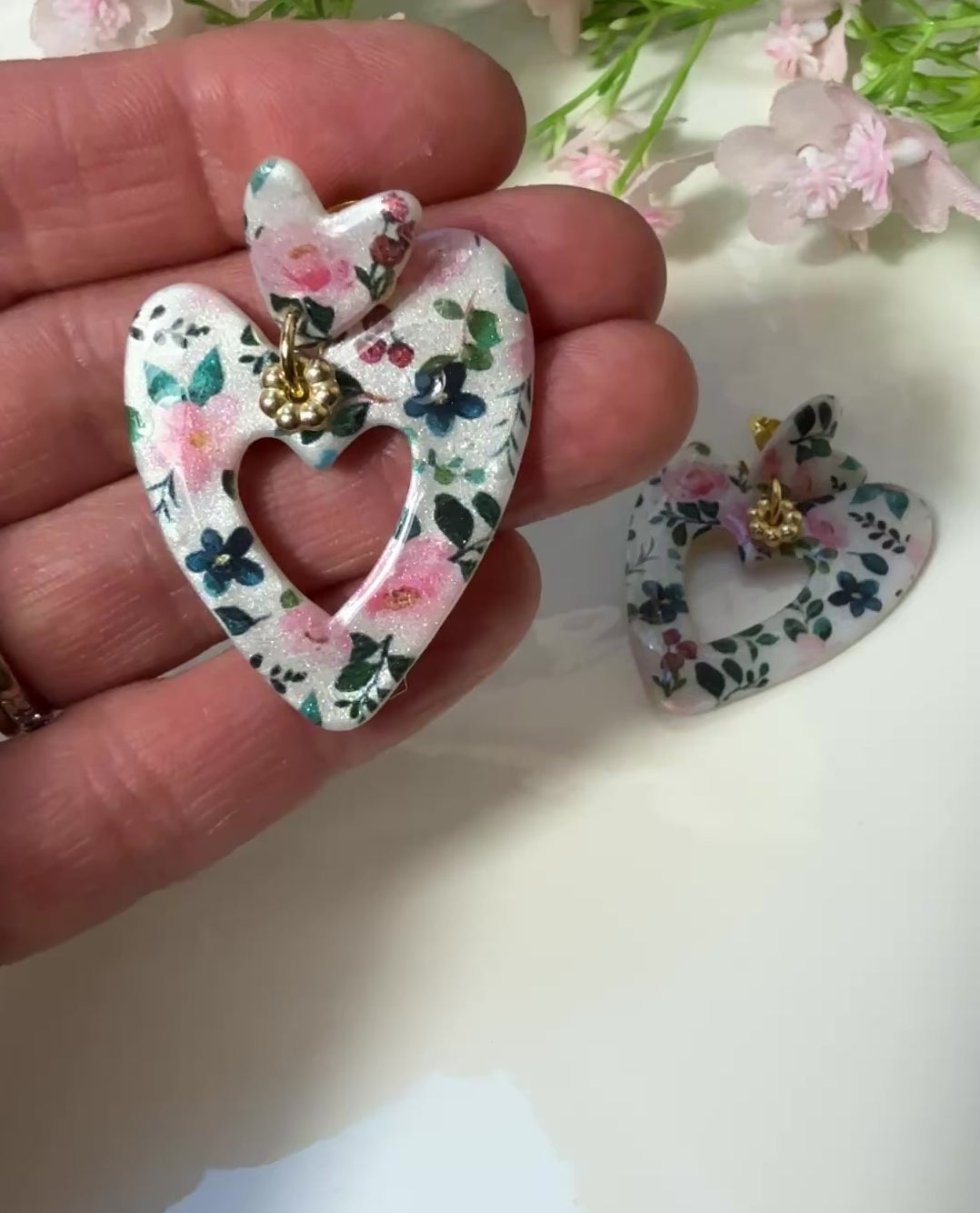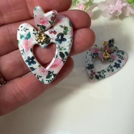 Ce magnifique double coeur est en argile polymère et celui-ci est monté sur une puce d'oreille en acier inoxydable.