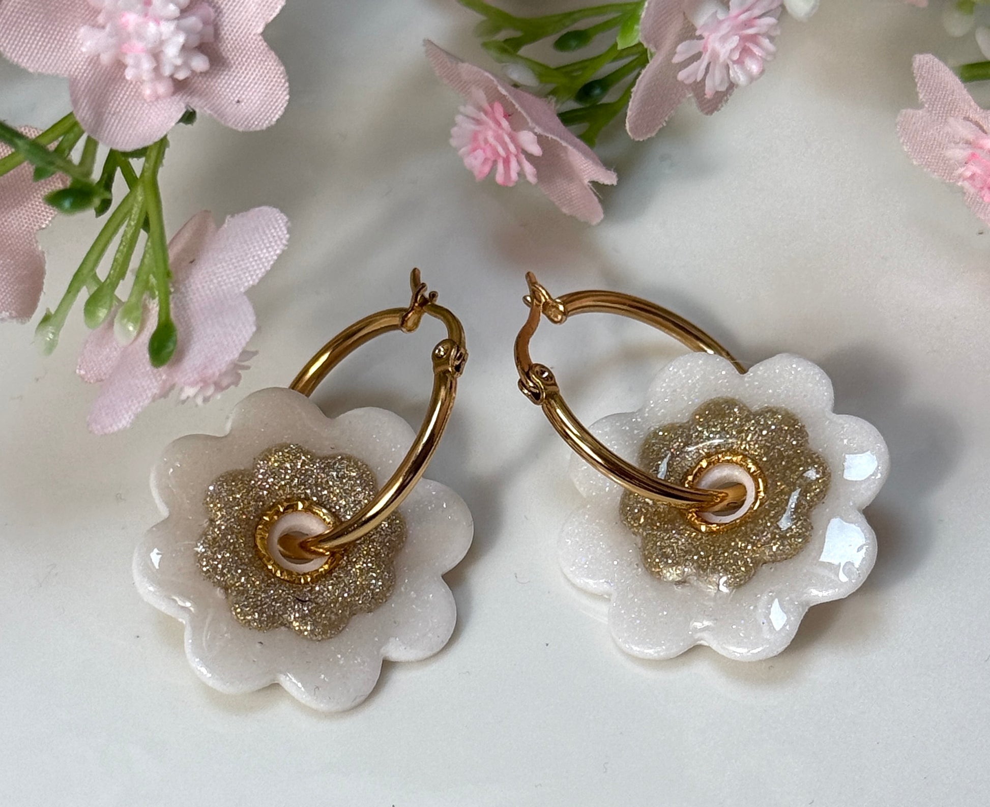 Celles-ci sont entièrement réalisées à la main en argile polymère et montées sur une créole en acier inoxydable.