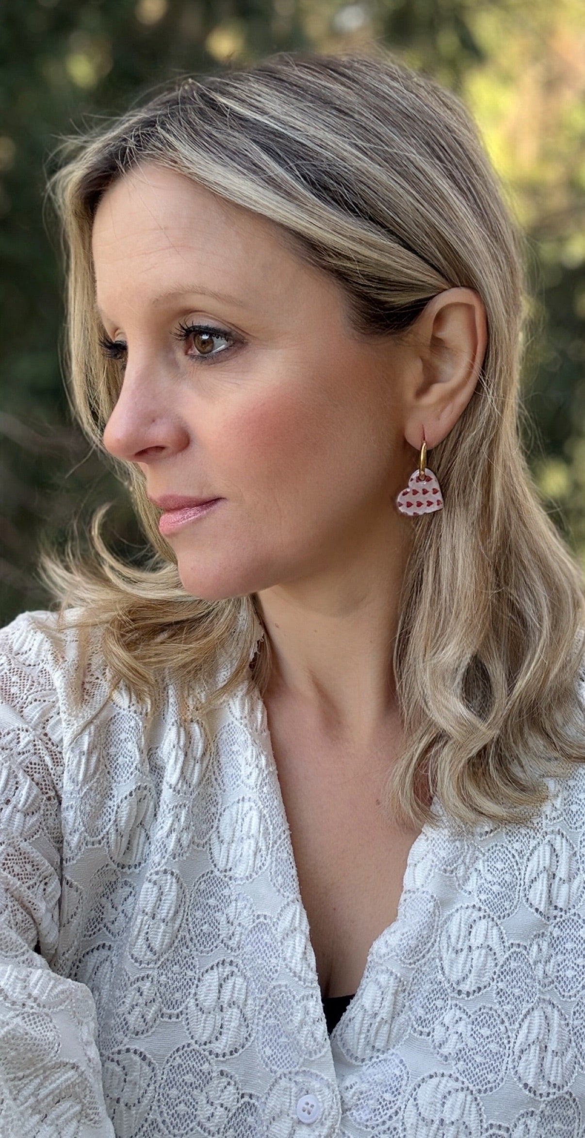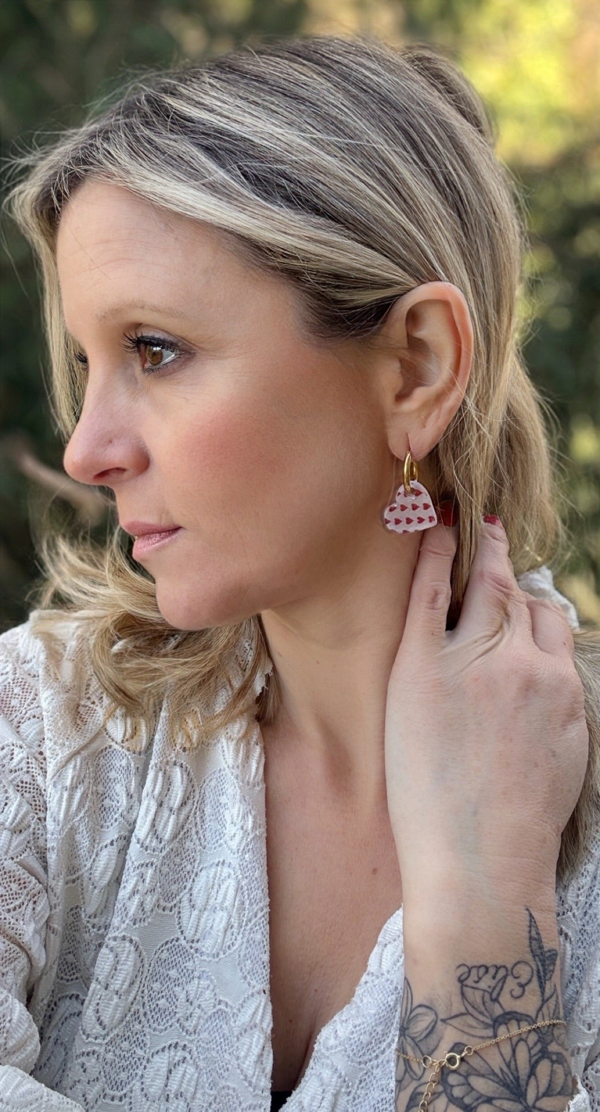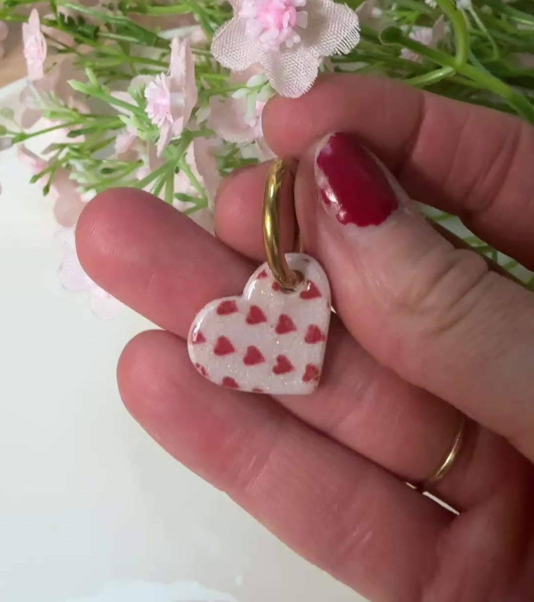Un petit coeur façonné à la main, celles-ci sont une délicate création en argile polymère, montée sur une créole en acier inoxydable de 20mn de diamètre.