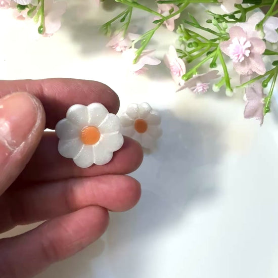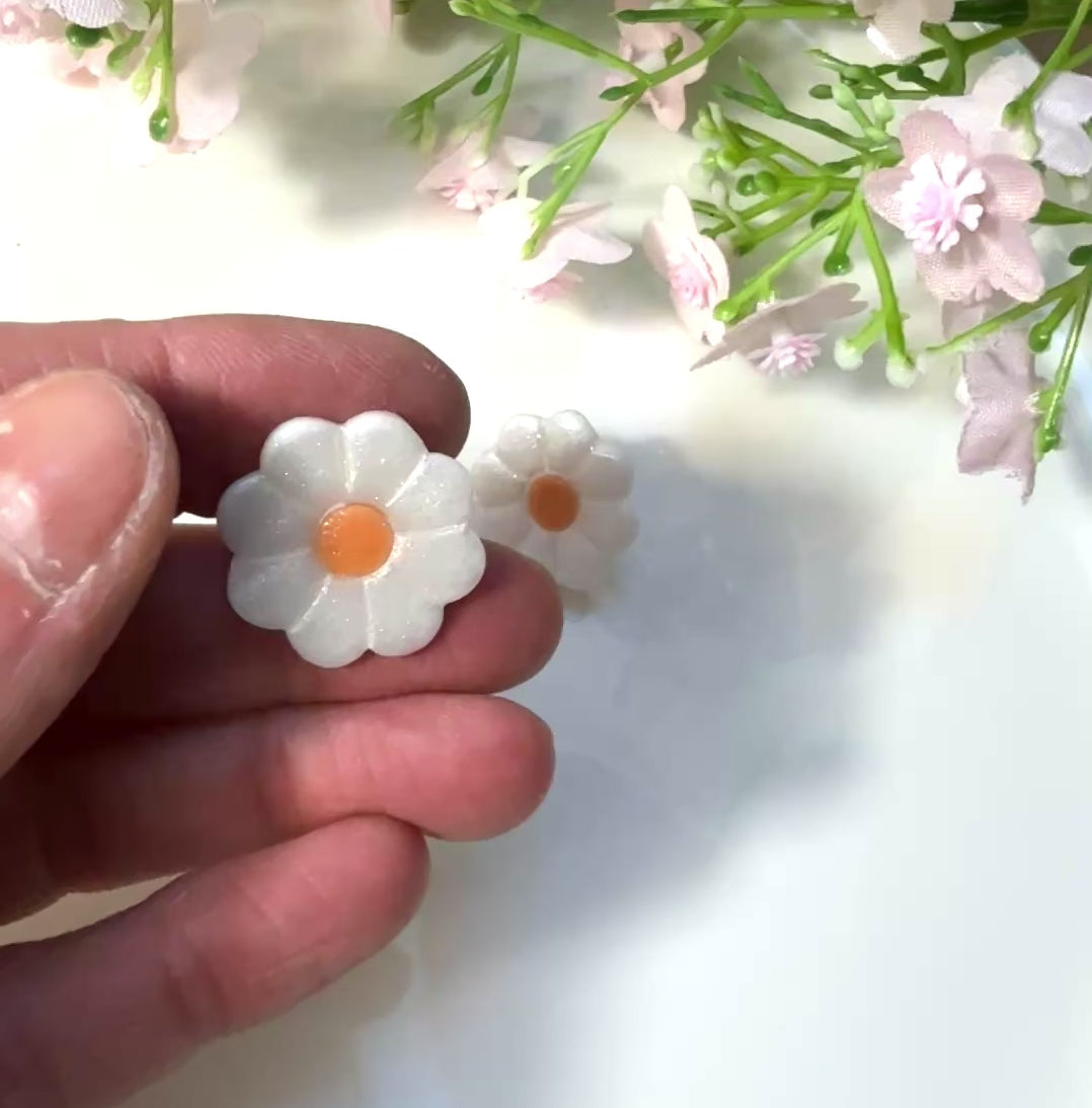 La petite puce d'oreille est réalisé à la main en argile polymère et mesure 20mn de diamètre.