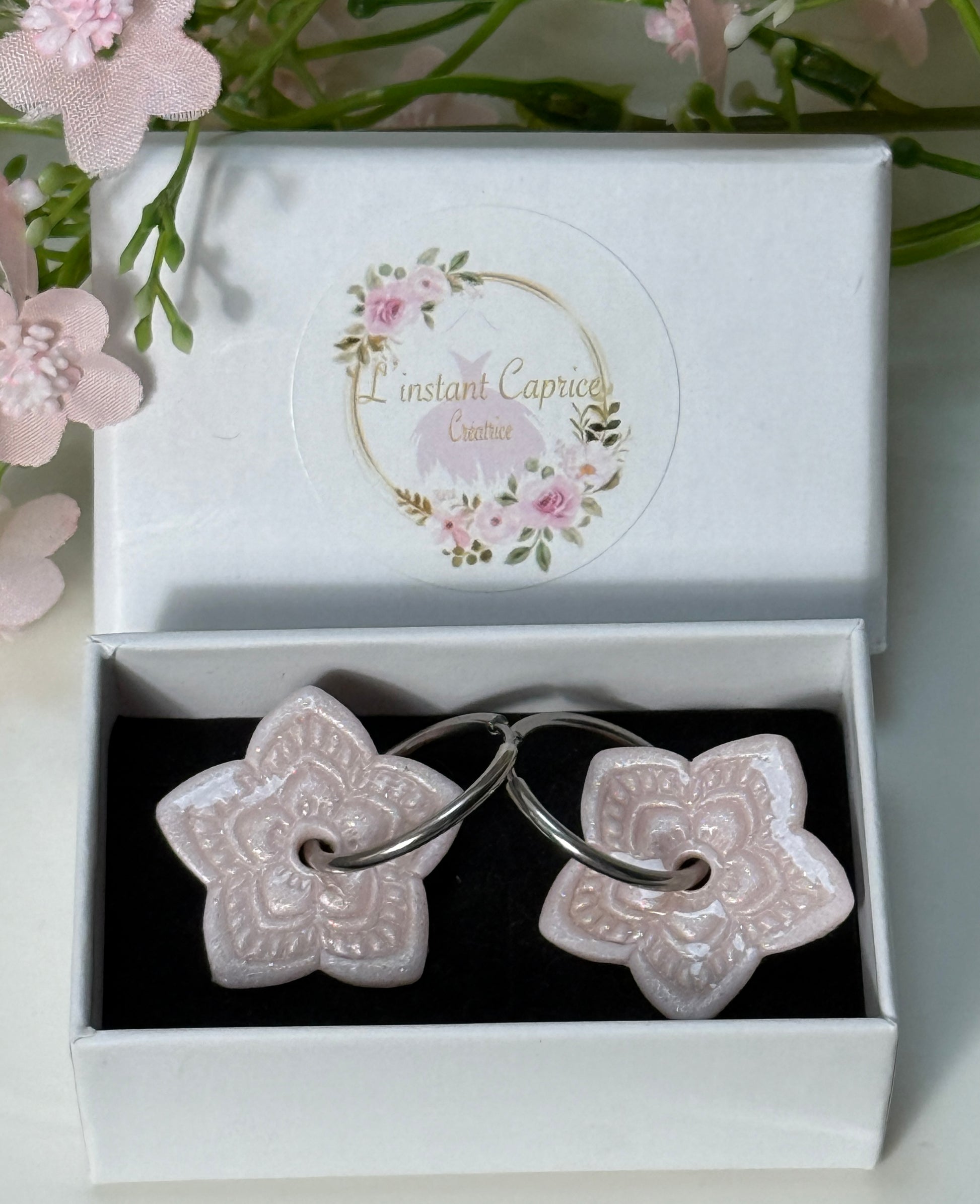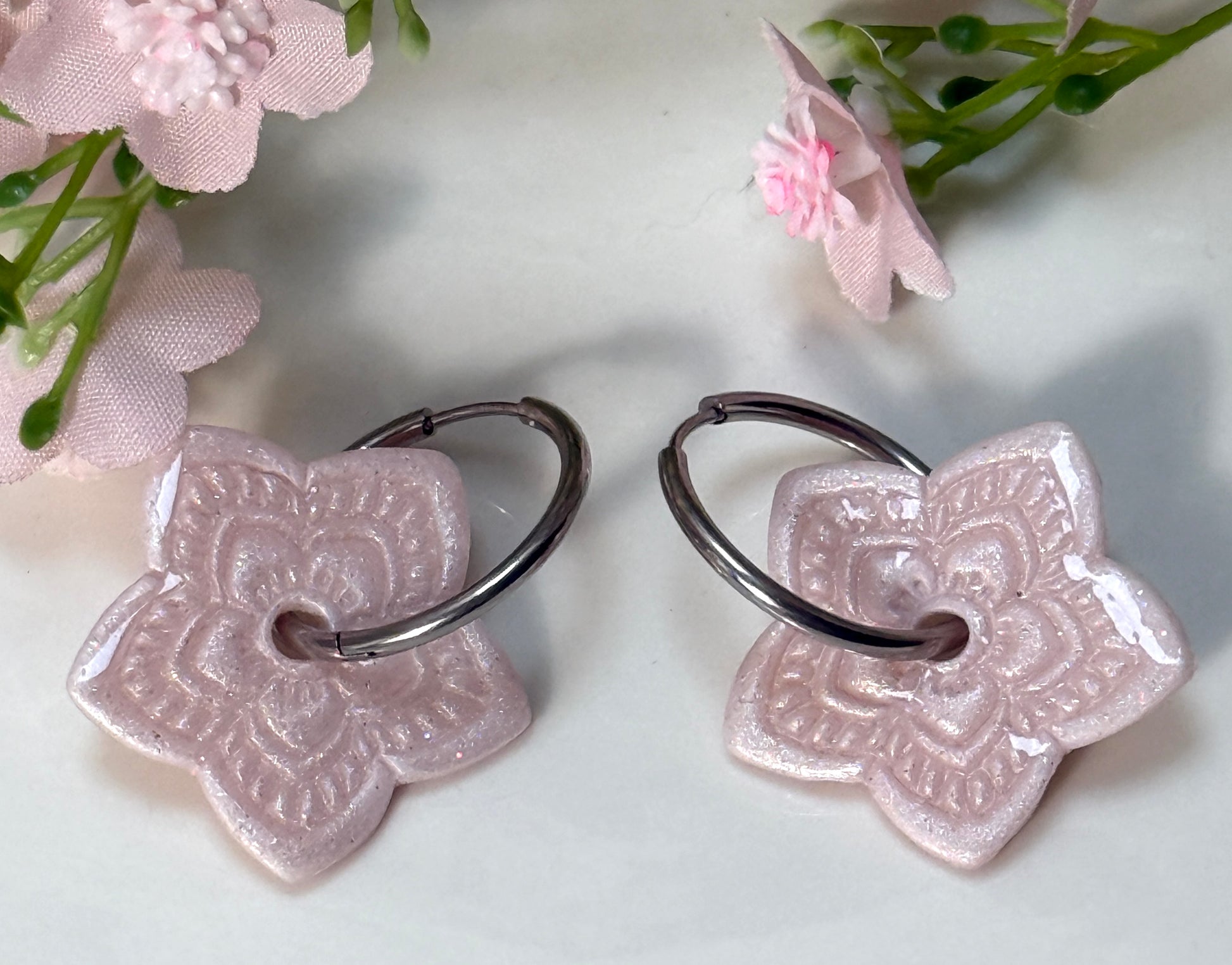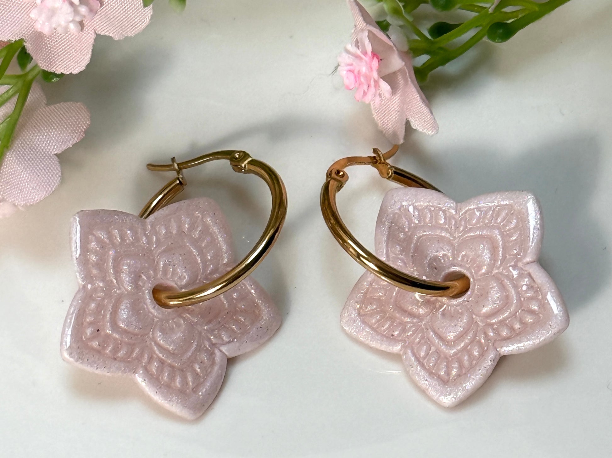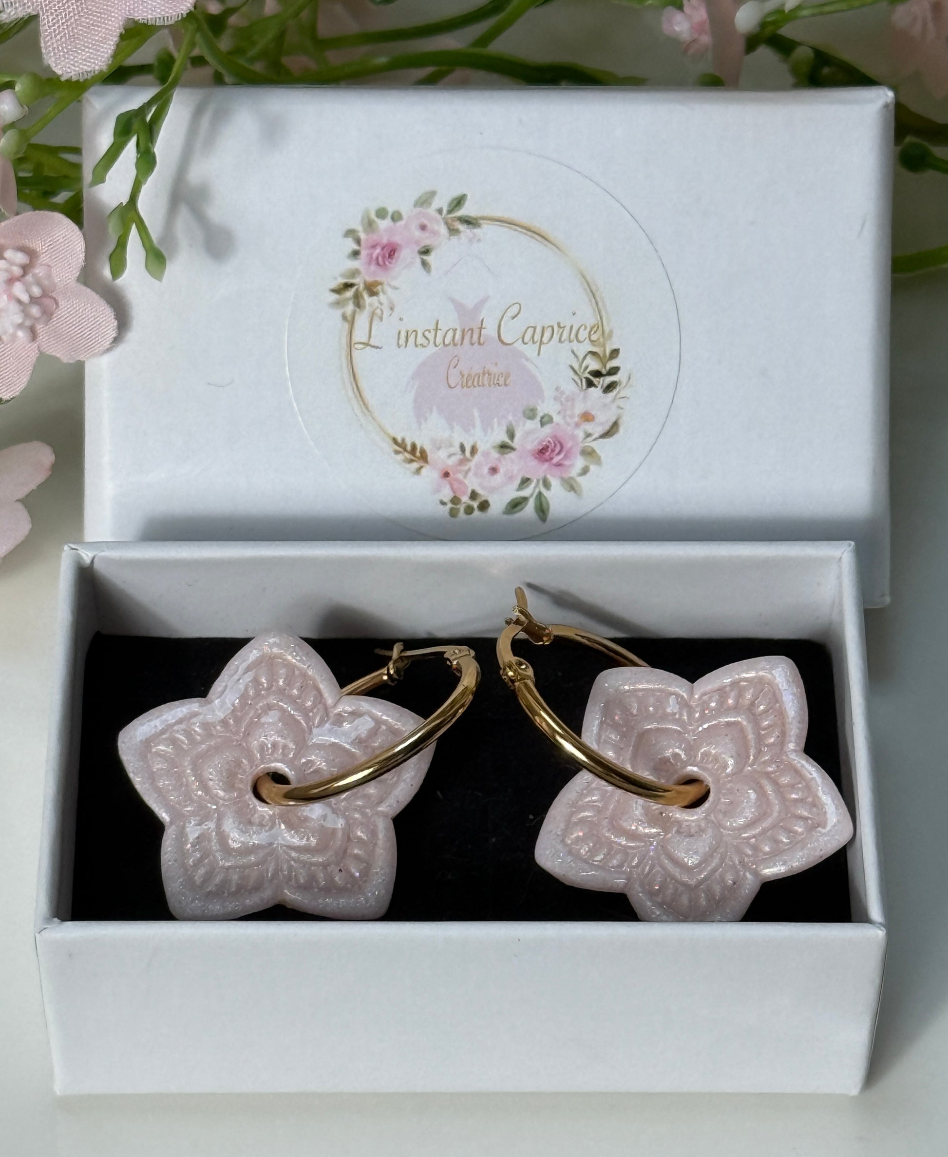 Celles-ci sont entièrement réalisées à la main en argile polymère et montées sur une créole en acier inoxydable.